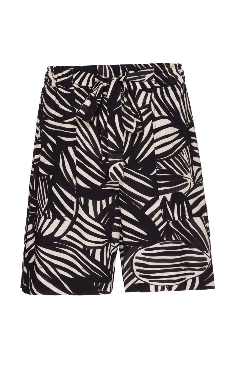 BERMUDA VISCOSE ESTAMPADA COM FAIXA - PRETO