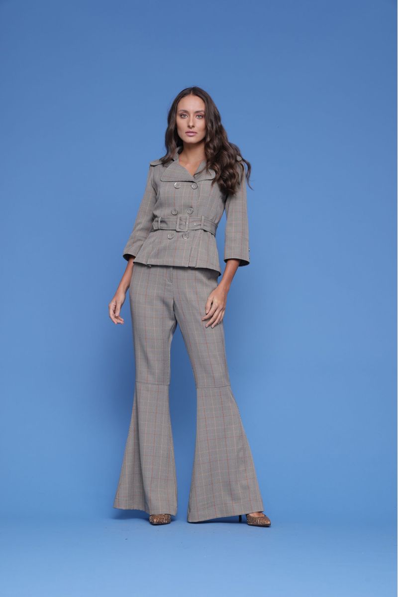 Blazer xadrez com recortes e cinto forrado do proprio tecido -estrutura acinturado -manga 7/8 -comprimento curto ,altura logo acima do quadril -cinto forrado do proprio tecido -botão forrado -composição 92%poliester e 4%elastano