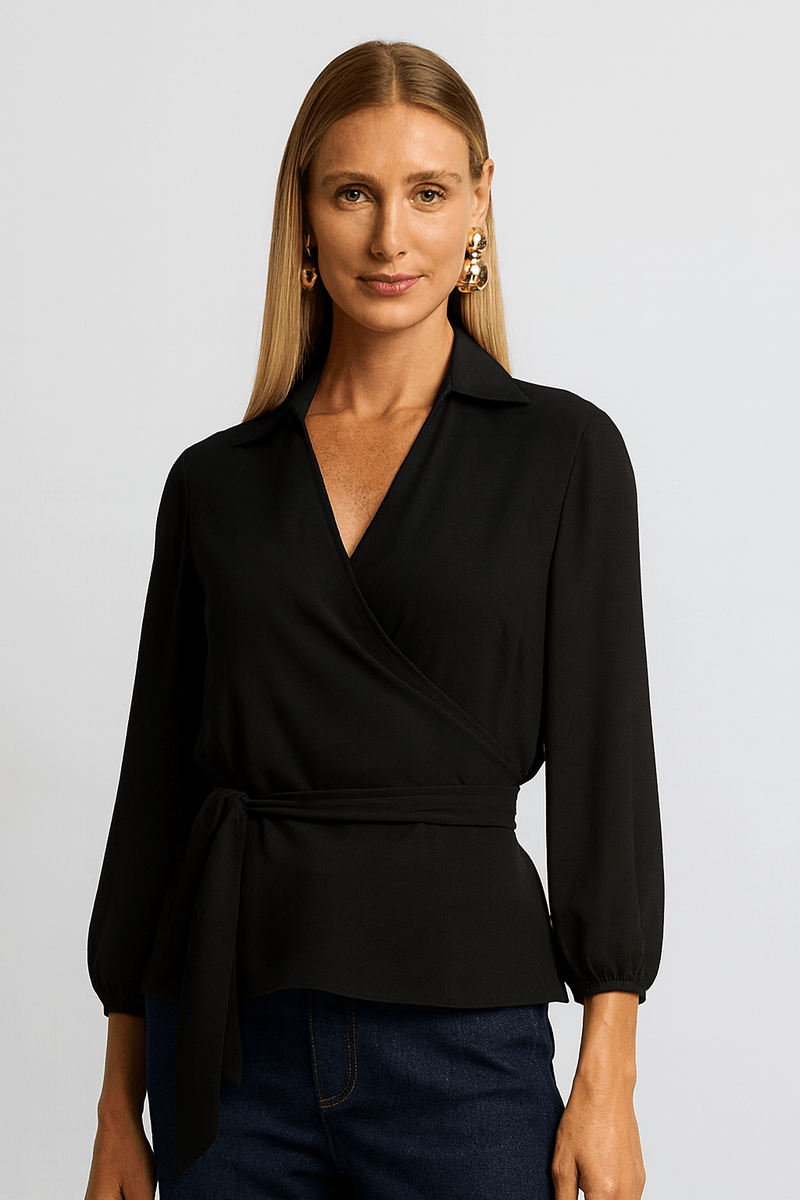 Camisa Transpassada de Chiffon com Amarração Lateral Delicada e cheia de charme, esta camisa transpassada de chiffon é a escolha perfeita para produções femininas com sofisticação. A modelagem com amarração lateral valoriza a silhueta com suavidade, enquanto a gola estruturada e as mangas longas trazem equilíbrio entre leveza e elegância. Destaques Chiffon leve e fluido: Tecido delicado com transparência sutil, ideal para composições sofisticadas. Modelagem transpassada: Ajuste personalizado que valoriza o corpo com caimento elegante. Amarração lateral: Detalhe feminino que adiciona charme e permite regulagem. Mangas longas: Elegância atemporal, perfeita para compor looks versáteis. Gola estruturada: Toque refinado que destaca o visual com sofisticação. Como Usar Look elegante: Combine com calça de alfaiataria ou saia midi para produções formais e modernas. Proposta casual chic: Use com jeans reto e sandálias para um visual leve com toque refinado.