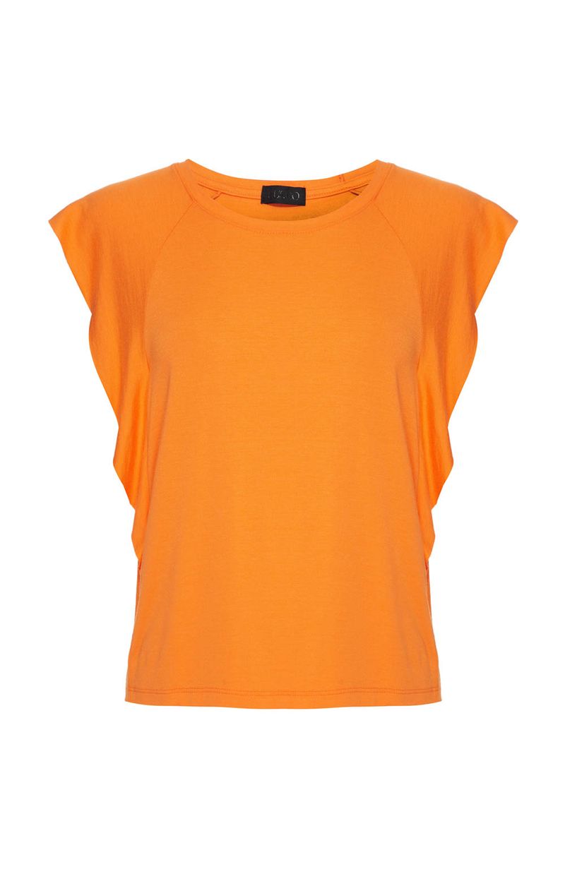BLUSA MALHA BABADOS MANGAS LATERAIS - LARANJA