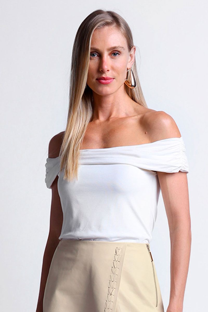 Blusa de Malha Ombro a Ombro com Sobreposição - Linha Pusco Ser