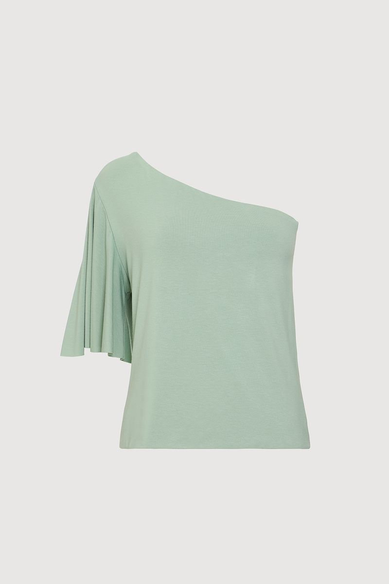 BLUSA 1 OMBRO MANGA BABADO - VERDE