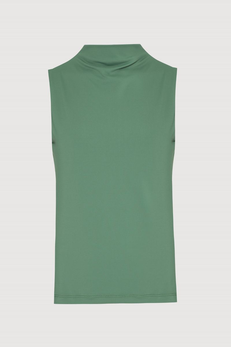 BLUSA COM GOLA SEM MANGA é a básica com aquela pegada mais chique ideal para looks do dia a dia, de trabalho e para ocasiões diversas. Possui gola alta, silhueta justa, sem manga, comprimento padrão e costas nadador.