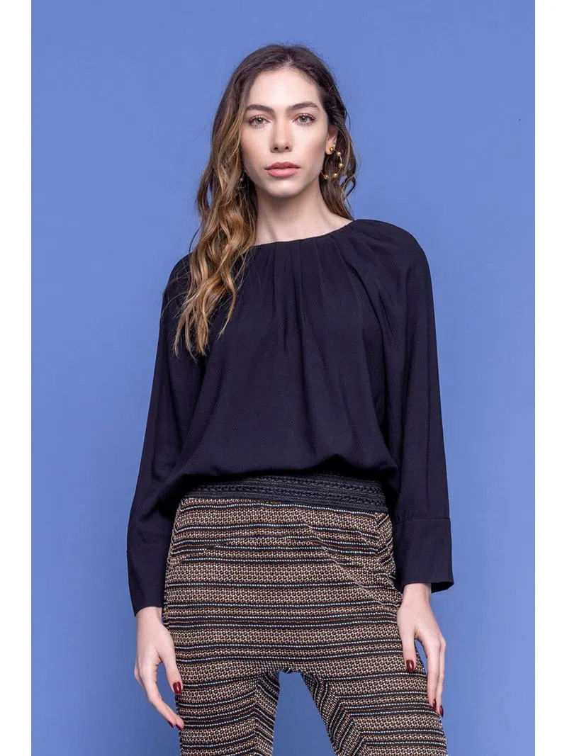 BLUSA COM PREGAS NO DECOTE - PRETO
