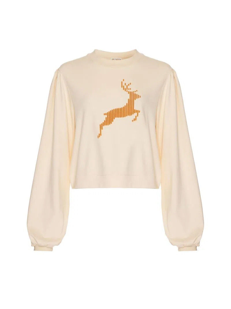 A Blusa de Malha com Estampa em Silk Flocado é bem quentinha e é perfeita para momentos divertidos. Uma Cropped soltinha, com decote careca e manga longa levemente bufante com punho largo, tem como charme especial a estampa em silk flocado, delicada e toda especial.