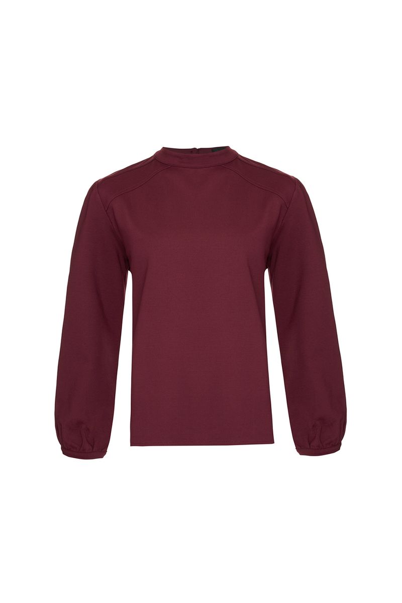 BLUSA GOLA ALTA E MANGA LEVEMENTE BUFANTE - VINHO