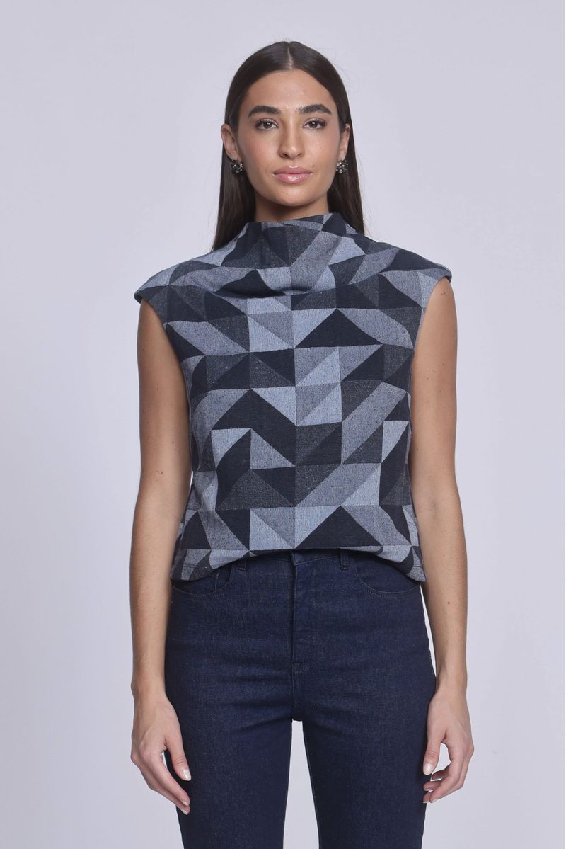 BLUSA JEANS ECO DENIN é aquele look básico nada básico, uma peça linda com gola alta e um tecido estampado geométrico jeans perfeito, dando muito glamour, elegância e modernidade para qualquer produção. Perfeita para se usar com calça jeans, alfaiataria e com o SHORTS JEANS ECO DENIN da mesma família ou a SAIA JEANS ECO DENIN ficando ainda mais estilosa. A Peça faz parte da nossa LINHA PUSCO SER, onde todas os tecidos possuem certificação de sustentabilidade.