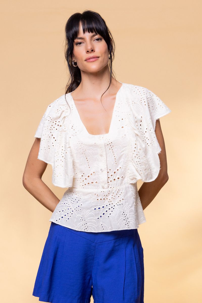 BLUSA LAISE BABADO MANGA é aquele look romântico que vai deixar sua produção mais estilosa e sofisticada, super versátil combina com peças jeans e de alfaiataria tudo vai depender da proposta para compor o look. Com tecido de lese, mangas com babados, decote com estrutura quadrada, costas com amarração de cordão do mesmo tecido, babado barra frente e costas e comprimento curto.
