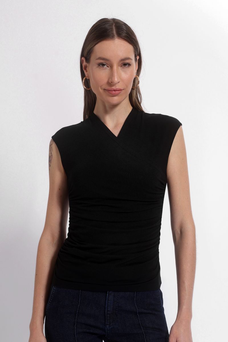 BLUSA MALHA DRAPEADA é a perfeita combinação de elegância e delicadeza. Essa peça apresenta um caimento suave que proporciona conforto e sofisticação ao mesmo tempo. Os detalhes drapeados criam um efeito visual refinado, adicionando textura e movimento à peça, ideal para valorizar qualquer composição. Versátil e atemporal, essa blusa é a escolha certa para transitar com estilo entre ocasiões casuais e produções mais elaboradas. A Peça faz parte da nossa LINHA PUSCO SER, onde todas os tecidos possuem certificação de sustentabilidade. -Gola Transpassada -Lateral drapeada -Sem mangas -Comprimento padrão -Acinturada