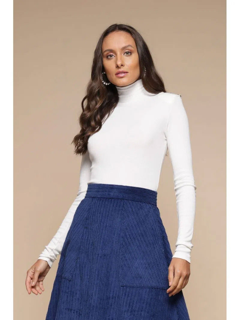 A Blusa Malha Rib com Botões no Ombro é uma peça muito charmosa, que você vai usar todos os dias! Peça de estilo básico, manga longa e gola alta, que tem como destaque os botões na costura do ombro, dando um ar sofisticado e moderno, cheio de estilo! Composição: 98% Viscose e 2% Elastano