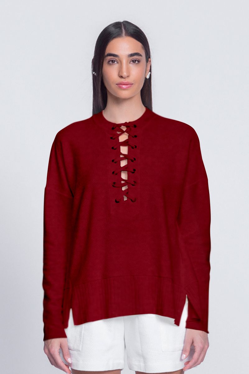 BLUSA MOLETOM DETALHE GOLA CADARÇO - VINHO