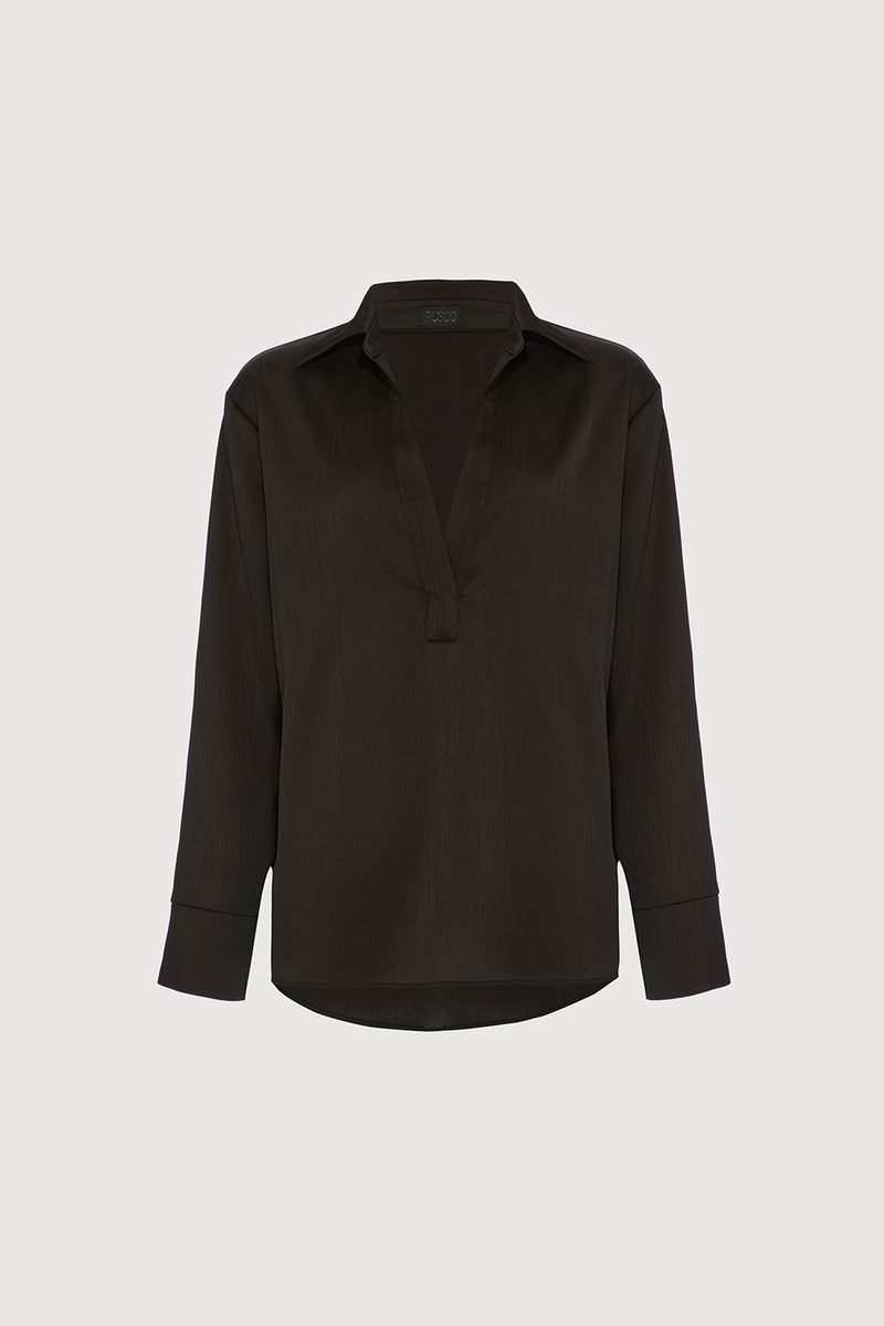Blusa Polo em Tecido Acetinado com Manga Longa
