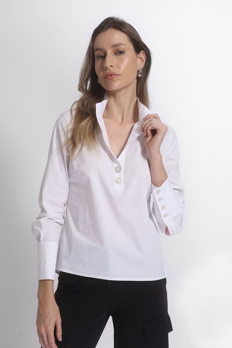 -Botão no decote/gola