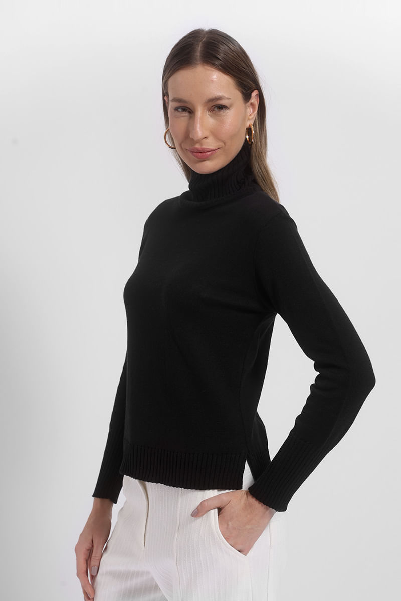 OUTLETBLUSASBLUSA TRICOT BASICA GOLA ALTA - PRETO