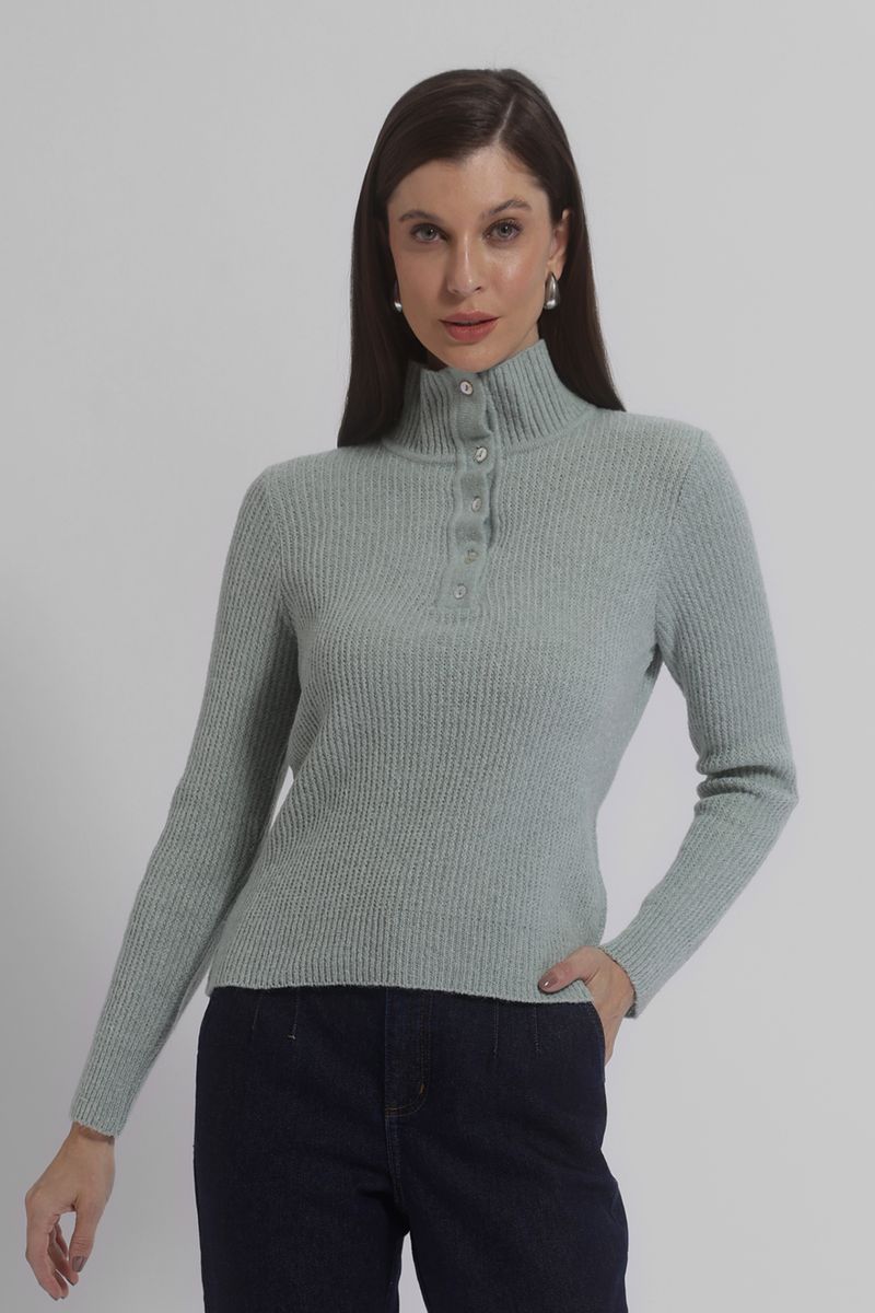 BLUSA TRICOT COM BOTAO NA GOLA - VERDE MILITAR