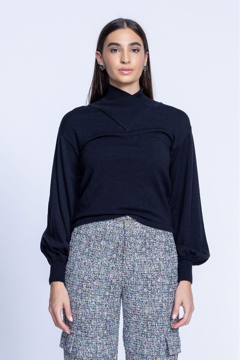 BLUSA TRICOT GOLA ALTA EM V MANGA BUFANTE é aquela peça coringa que combina com absolutamente tudo, ótima para os dias frios. Perfeita para usar com calças jeans, saias midis e peças de alfaiataria, tudo vai depender da proposta do look. Peça em tricot com toque macio e confortável.