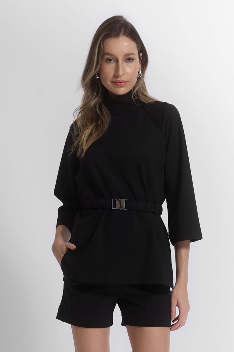 BLUSA TUNICA MALHA TECH ESTRUTURADA é a peça ideal para quem busca sofisticação e conforto em um único item. Sua estrutura proporciona um caimento impecável e elegante, com fluidez que valoriza a silhueta. O design tunicado oferece um toque moderno e versátil, perfeito para compor looks urbanos ou mais sofisticados. Uma peça chave que une praticidade e estilo, ideal para quem deseja um visual contemporâneo e refinado. -Gola alta -Zíper na nuca -Mangas 7/8 -Comprimento longo.