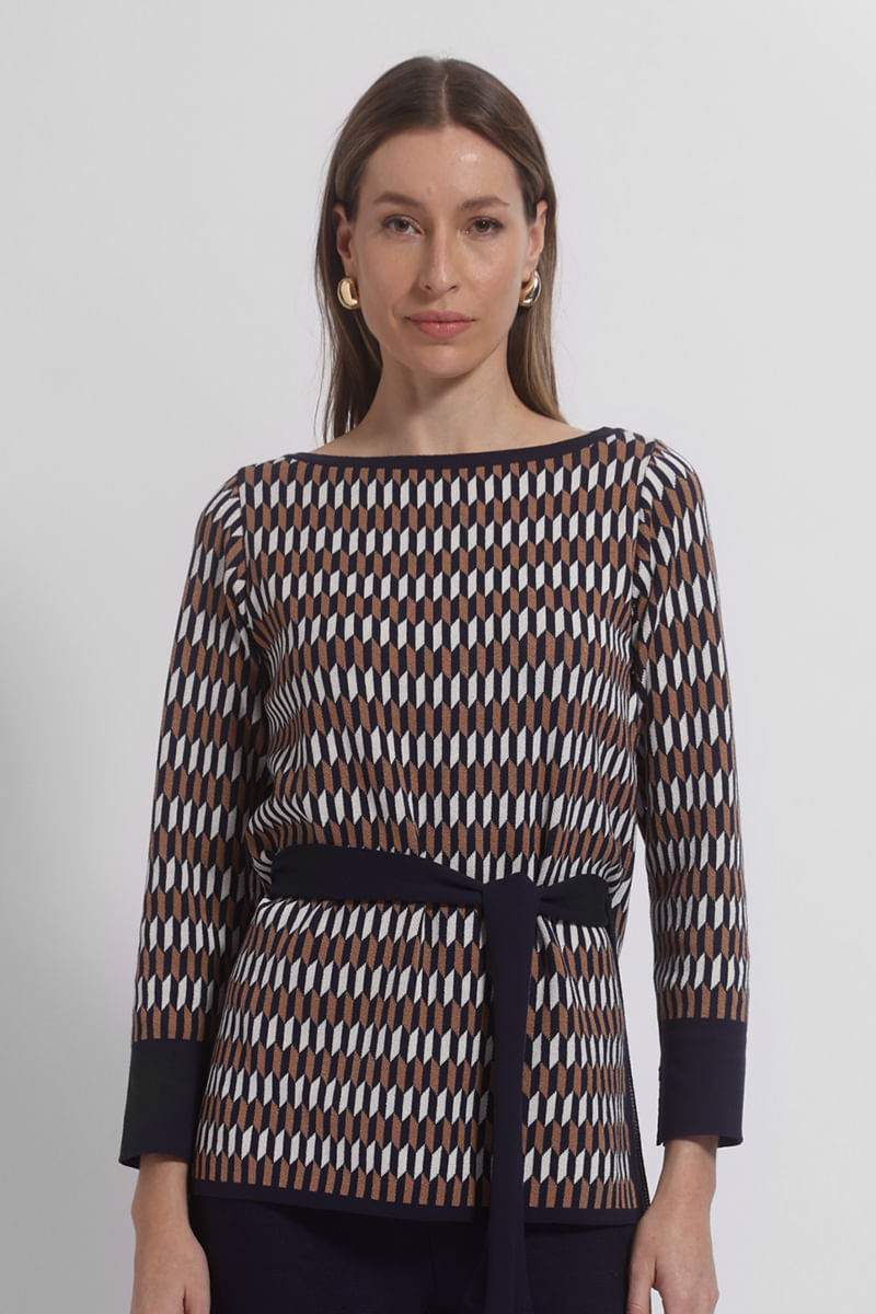 BLUSA TUNICA TRICOT JACQUARD é uma peça que exala sofisticação e estilo. Confeccionada em tricot de alta qualidade, ela apresenta uma padronagem jacquard elaborada, que adiciona riqueza de detalhes ao design. Com um comprimento alongado, típico da túnica, e um caimento fluido, essa peça proporciona elegância e conforto em igual medida. Ideal para combinações modernas e refinadas, é perfeita para mulheres que apreciam versatilidade com um toque de exclusividade. Formando um look perfeito com a nossa CALÇA TRICOT JACQUARD.