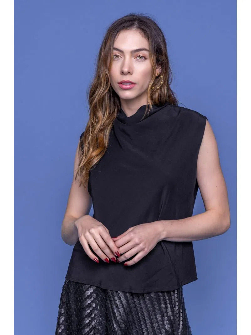 A Blusa Viscose Gola Degagê é muito linda e combina com tudo! Soltinha, com a famosa “gola boba”, e sem manga, é uma coringa no seu closet, que vai bem da ocasião mais formal à festa! Composição: 65% Viscose e 35% Poliéster
