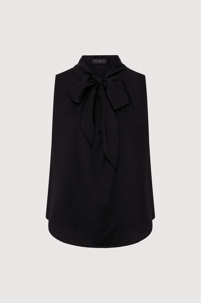 BLUSA VISCOSE SEM MANGA COM LAÇO é muito charmosa e combina com diversas ocasiões, pode ser usado com calças jeans, saias e peças de alfaitaria. A Blusa de tecido leve possui uma faixa fixa na gola para amarração, transformando o look básico em um visual mais chique e diferenciado.