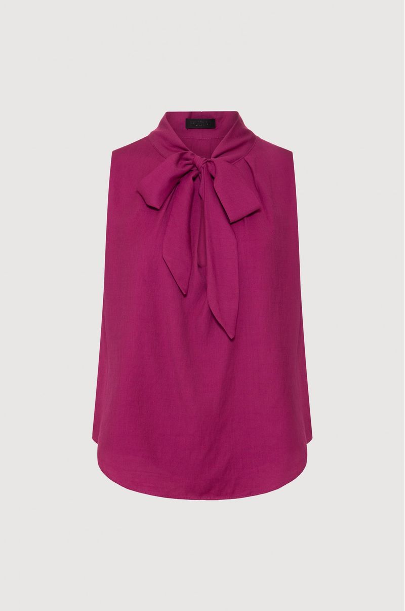 BLUSA VISCOSE SEM MANGA COM LAÇO é muito charmosa e combina com diversas ocasiões, pode ser usado com calças jeans, saias e peças de alfaitaria. A Blusa de tecido leve possui uma faixa fixa na gola para amarração, transformando o look básico em um visual mais chique e diferenciado.