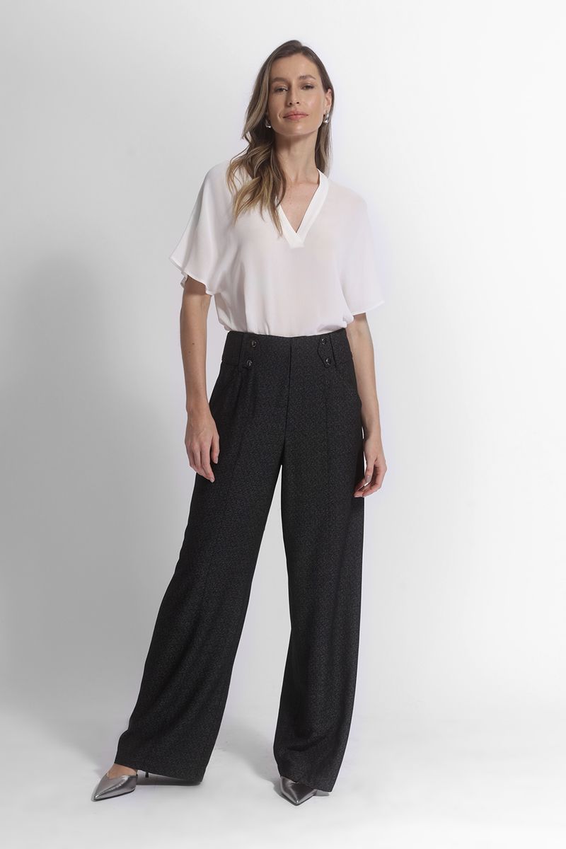 CALÇA ALFAIATARIA LEVEMENTE PANTALONA COM DETALHE NA CINTURA é a união perfeita entre elegância e modernidade. Com uma modelagem que proporciona um caimento fluido e sofisticado, ela apresenta um toque de amplitude característico do estilo pantalona, mas de forma sutil e equilibrada. O detalhe na cintura confere um charme especial, destacando a peça com um design exclusivo. Versátil e confortável, essa calça é ideal para compor looks refinados para o trabalho, eventos ou momentos de lazer com estilo. Combine com a CASACO TRANSPASSADO COM ZIPER NO FECHAMENTO E NOS PUNHOS. A Peça faz parte da nossa LINHA PUSCO SER, onde todas os tecidos possuem certificação de sustentabilidade.