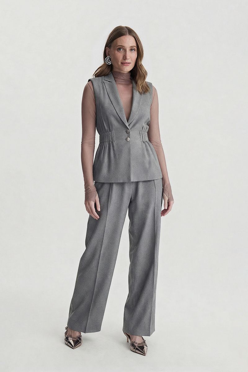 A calça de alfaiataria com regulagem no cós é um clássico do guarda-roupa feminino, perfeita para quem busca elegância e conforto em uma única peça. Com modelagem estruturada e caimento impecável, ela garante um visual refinado e versátil, ideal para o trabalho ou ocasiões especiais.