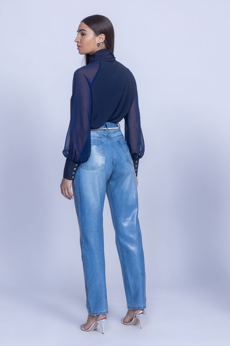 CALÇA JEANS RESINADA é uma ótima escolha para estar sempre fashion nos looks do dia a dia, super coringa combina com variados estilos, use com camisas de alfaiataria, blusas de malha, tricot e calçados de salto alto ou tênis, tudo vai depender da produção. A calça jeans com lavagem destroyed ainda ganha um efeito com aplicação de foil molhado deixando a peça ainda mais estilosa e fashion.