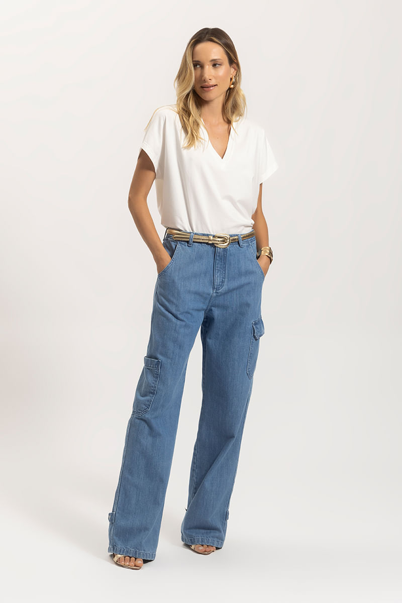 CALÇA JEANS RETA COM BOLSO CARGO é a combinação perfeita entre estilo utilitário e conforto. Com um corte reto que alonga a silhueta, a funcionalidade estão nos bolsos que também proporcionam um visual moderno ao look, deixando seu visual com mais personalidade. Perfeita para ser usada com peças mais básicas de blusas, camisas e tops trazendo praticidade e estilo para suas produções.