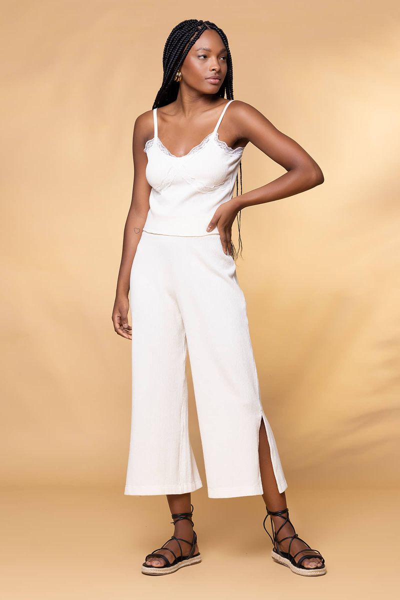 A Calça Malha Nervura com a modelagem mais ampla é tudo o que você procura para usar no dia a dia. Com silhueta mais reta estilo pantalona pode ser usado com as peças de sua família, Regata Malha Nervura e Colete Malha Nervura, deixando seu look ainda mais incrível. A Peça faz parte da nossa LINHA PUSCO SER, onde todas os tecidos possuem certificação de sustentabilidade. - Silhueta Pantalona - Cós largo - Comprimento longo.