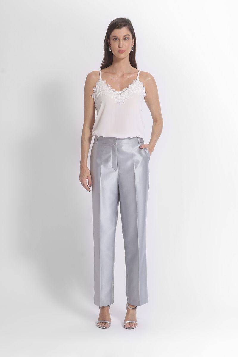 CALÇA RETA ALFAIATARIA ESTRUTURADA METALIZADO é a escolha perfeita para quem busca um look sofisticado e contemporâneo. Confeccionada em tecido metalizado, sua superfície brilhante e refinada proporciona um toque de luxo e modernidade. A modelagem reta e a alfaiataria impecável garantem um caimento perfeito, enquanto a estrutura da peça confere um visual elegante e cheio de personalidade. Ideal para ocasiões especiais ou para quem deseja adicionar um toque ousado ao dia a dia, essa calça é sinônimo de estilo e versatilidade. Combine com nosso BLAZER ALFAIATARIA ESTRUTURADO TECIDO METALIZADO para um look perfeito.