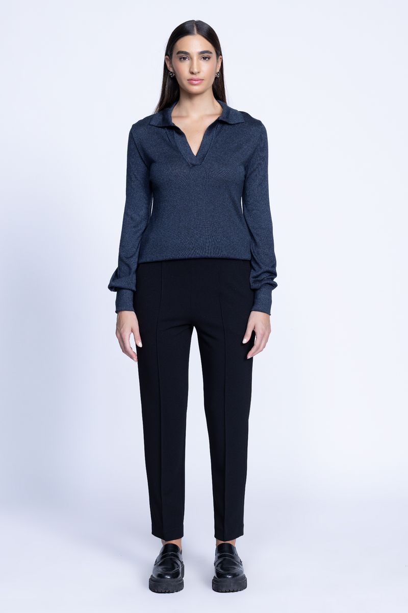 CALÇA SKYNNI ALFAIATARIA é elegante e super estilosa para usar em looks do dia a dia e de trabalho, combine com blusas de malha, tricot e camisas de alfaiatria com sandália e sapatos de salto, tudo vai depender da proposta do look. A calça de crepe estruturado com elastano possui uma nervura na parte da frente, dando aquele diferencial na peça mais básica.