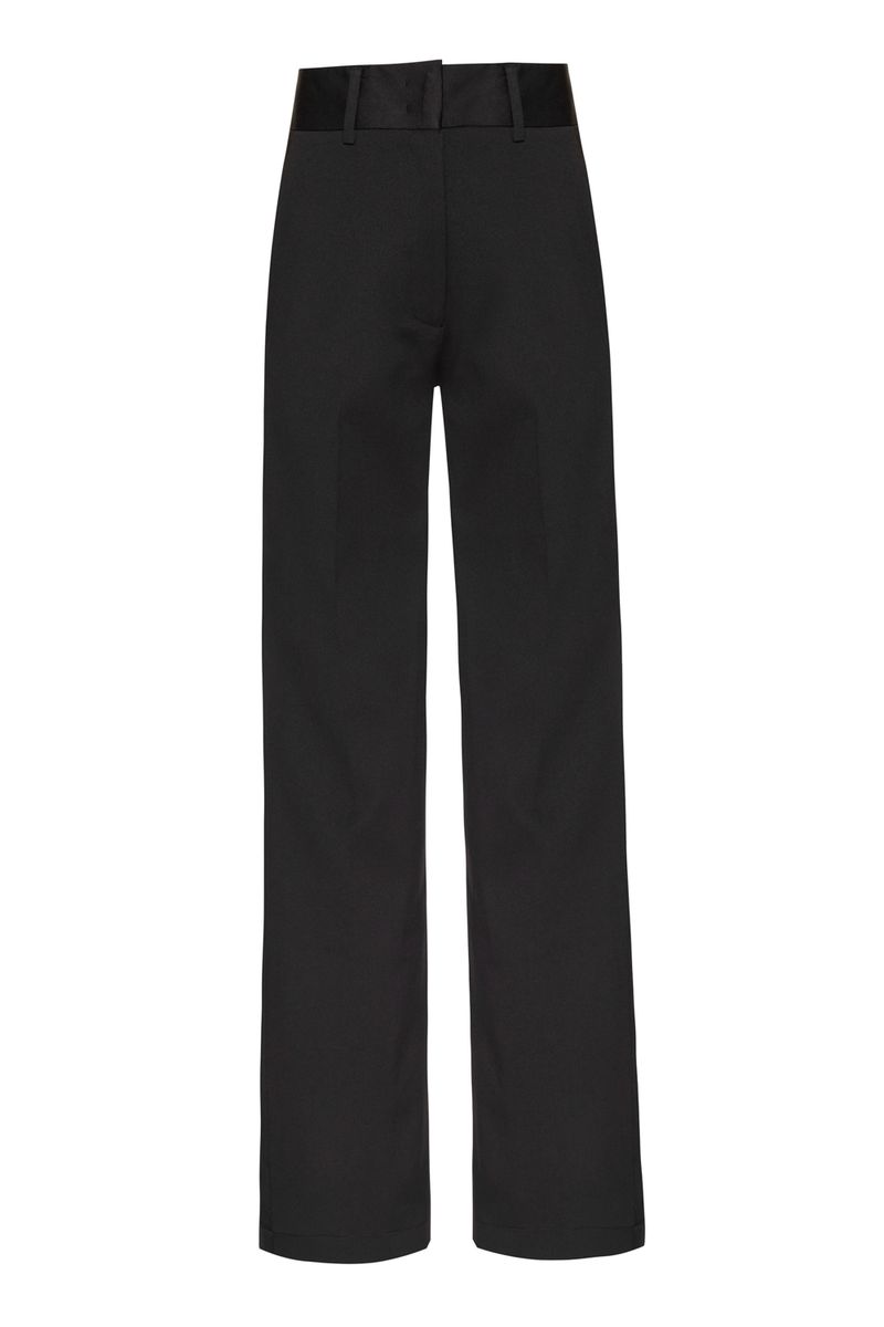 CALÇA SMOKING RETA COM DETALHE DE CETIN NA LATERAL - PRETO