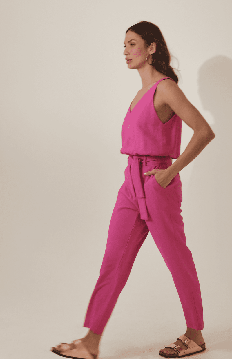 Calça viscose com faixa do próprio tecido, peça super básica e moderna - Estrutura reta levemente afunilada - Faixa no cos - Comprimento Capri - Composição 92% Viscose e 8% Poliéster