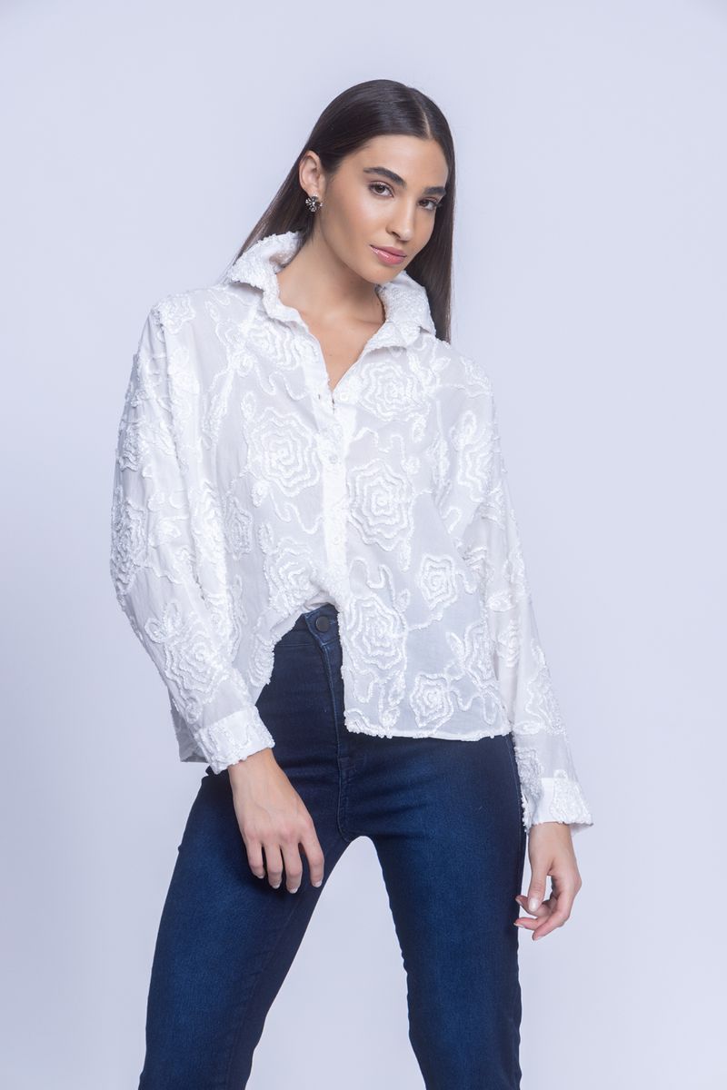 CAMISA ALGODÃO RELEVO MANGA LONGA é uma peça super charmosa ótima para ser usada com peças jeans e de alfaiataria, tudo vai depender da proposta. Com voil de algodão em relevo de chenille que é o seu diferencial. - Silhueta reta - Abertura frontal com botões - Gola de camisaria - Manga longa - Costas fechada - Comprimento padrão Composição: 100% Algodão