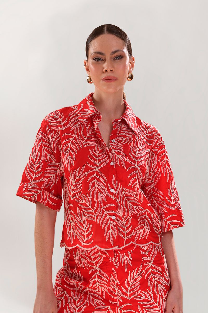 CAMISA BORDADA CROPPED linda e rica em detalhes, está peça trás muita armônia com os bordados em desenhos de folhagem em tom natural que são o grande destaque da peça, fazendo-a bela e super elegante. O comprimento cropped confere um visual jovem e atual, perfeito para combinar com peças de cintura alta e com nosso SHORTS BORDADO, trazendo um look mais leve e original. Uma camisa perfeitas para os dias quentes, ficando linda também com calça jeans e até uma calça alfaiataria.