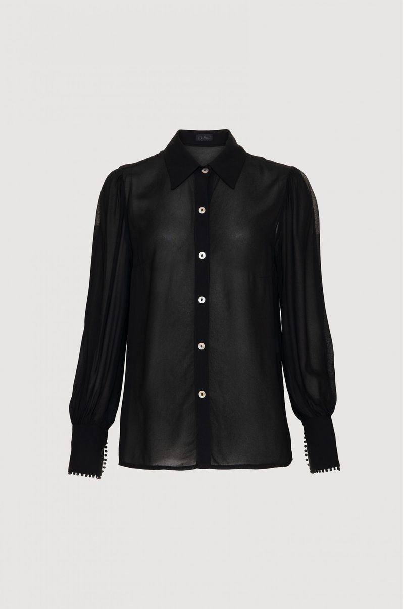 CAMISA COM DETALHE MANGA é aquela peça charmosa que irá te acompanhar em diversas ocasiões do dia a dia. Use com calças de alfaiataria, saltos e sandálias para looks incríveis. A camisa de georgette de viscose com toque leve e fluido, possui detalhe no punho, dando um charme a mais na sua produção.
