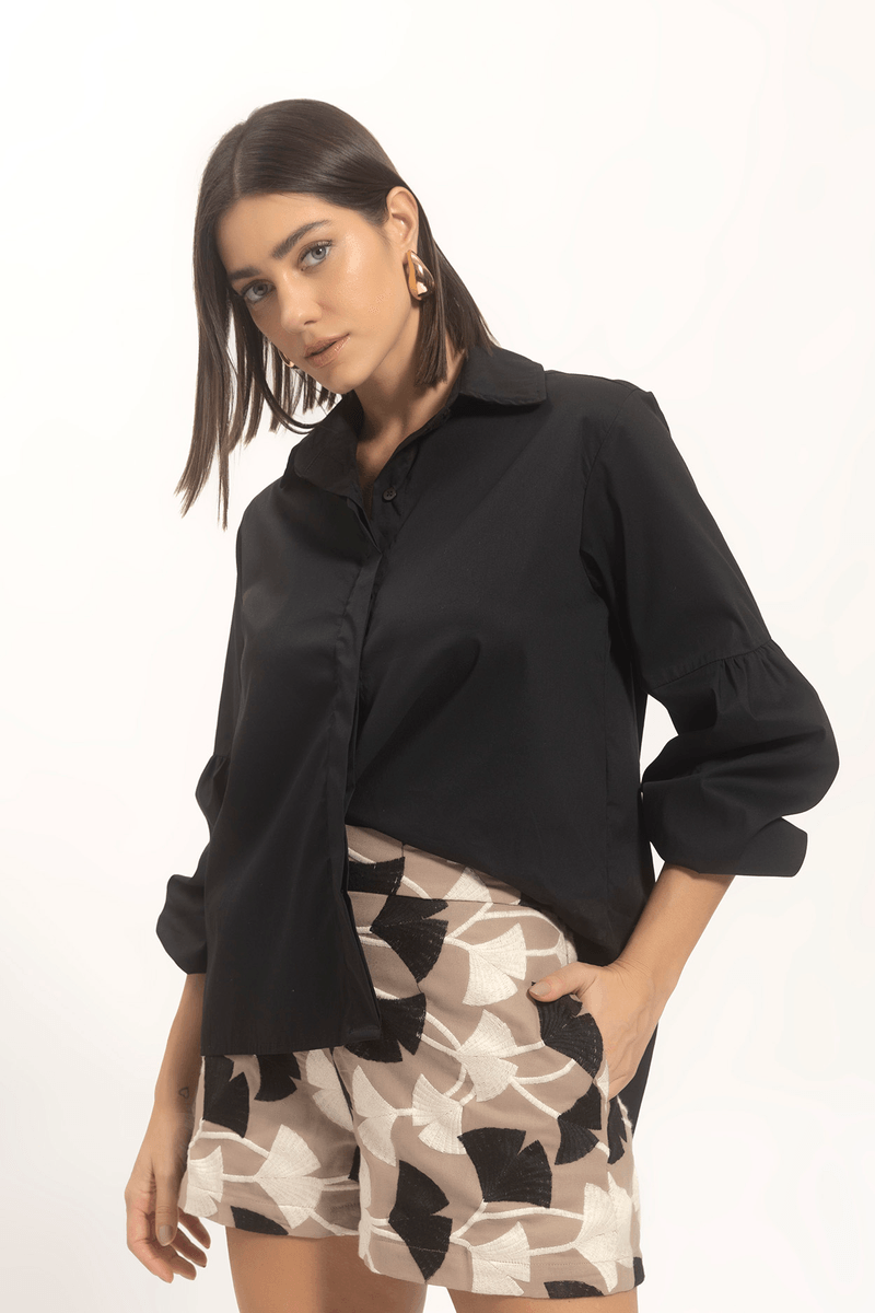 CAMISA DETALHE MANGA é clássica e muito estilosa deixando a sua produção do dia a dia ainda mais chique e moderna. Ótima peça para usar com calças jeans, de alfaiataria e malha, super versátil, pode ser combinada com sapatos de salto alto para uma produção mais chique, tênis e sandália para ocasiões mais informais. A camisa tem um detalhe na manga deixando o seu look ainda mais incrível.