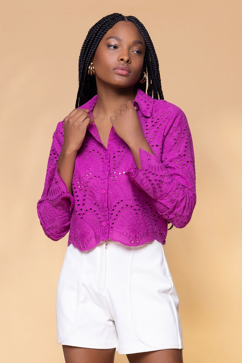 CAMISA LAISEE é a escolha ideal para looks lindos de verão mais descontraídos e modernos, ótimo para combinações com jeans e em composições com as peças de sua família (SHORT LAISE e TOP LAISE). Com silhueta soltinha, gola de camisa, manga longa com punho, abertura com botões e costas fechadas. - Comprimento Cropped - Gola camisa - Manga longa com punho - Abertura com botões - Silhueta soltinha Composição: 100% Algodão