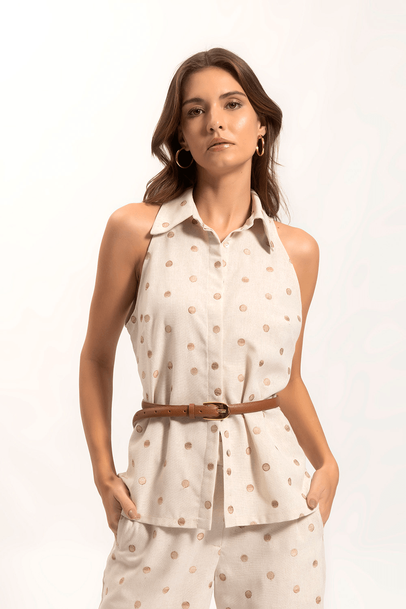 CAMISA SEM MANGA BORDADO POÁ tem aquele estilo romântico com um toque moderno, ótima para usar com calças jeans e de alfaiataria, é uma peça super versátil, podendo te acompanhar para diversas ocasiões do dia a dia. Combine com a CALÇA ALFAIATARIA CAPRI BORDADO POÁ, da mesma família, formando um conjuntinho maravilhoso, deixando seu visual ainda mais chique.