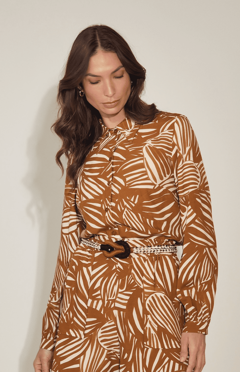 CAMISA VISCOSE ESTAMPADA - CARAMELO