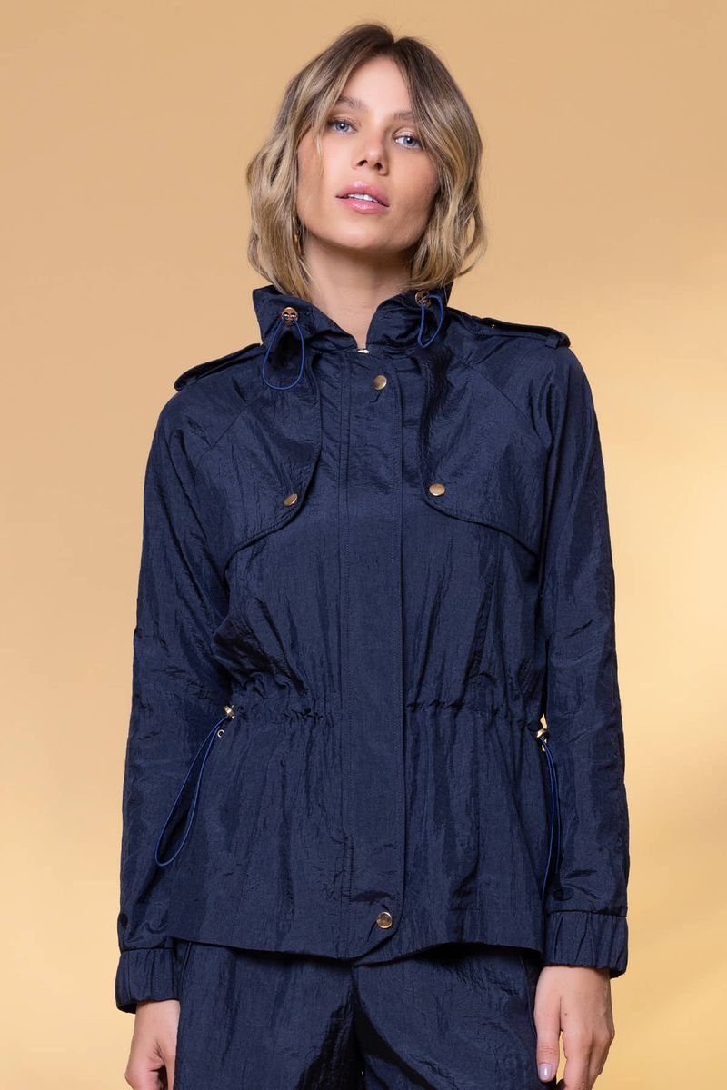 CASACO TAFETÁ COM BOTÕES tem um estilo mais esportivo é uma ótima escolha para sobreposições em looks mais casuais do dia a dia. Possui manga longa com elástico no punho, detalhes com botões, cordão para ajustes na gola e cintura, martingale nos ombros, fechamento frontal com botão e zíper.