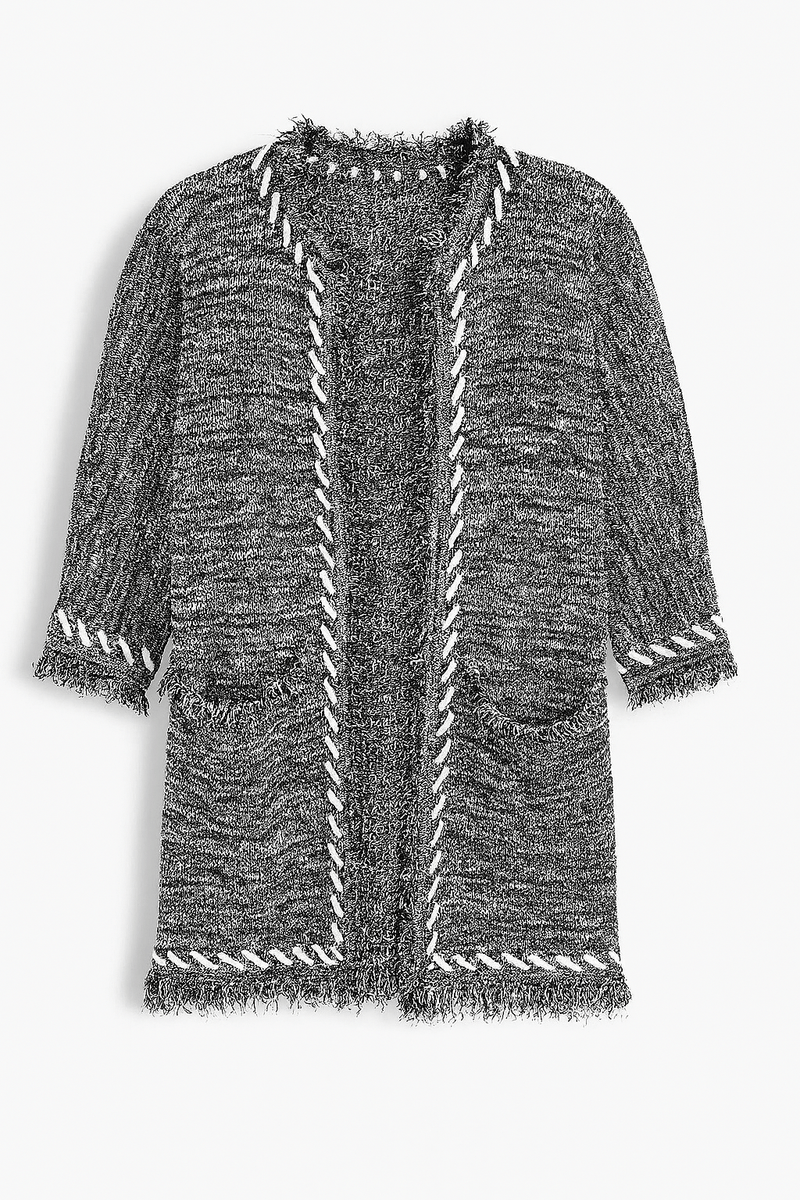 O Casaco Tricot Tweed com Contorno Bordado é uma peça linda e superconfortável. Reto, possui manga 7/8, sem cava, de comprimento abaixo do quadril, com bolsos frontais e sem fechamento. O charme especial desse casado é o contorno de cordão, que dá um destaque a mais na peça. Com roupas básicas, ele deixa o look muito mais estiloso!