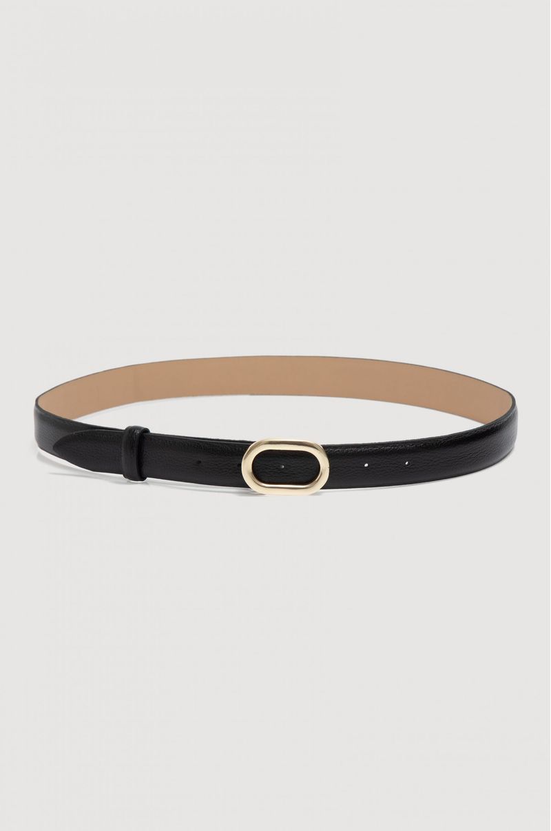 CINTO COURO FIVELA OVAL DOURADA - PRETO*