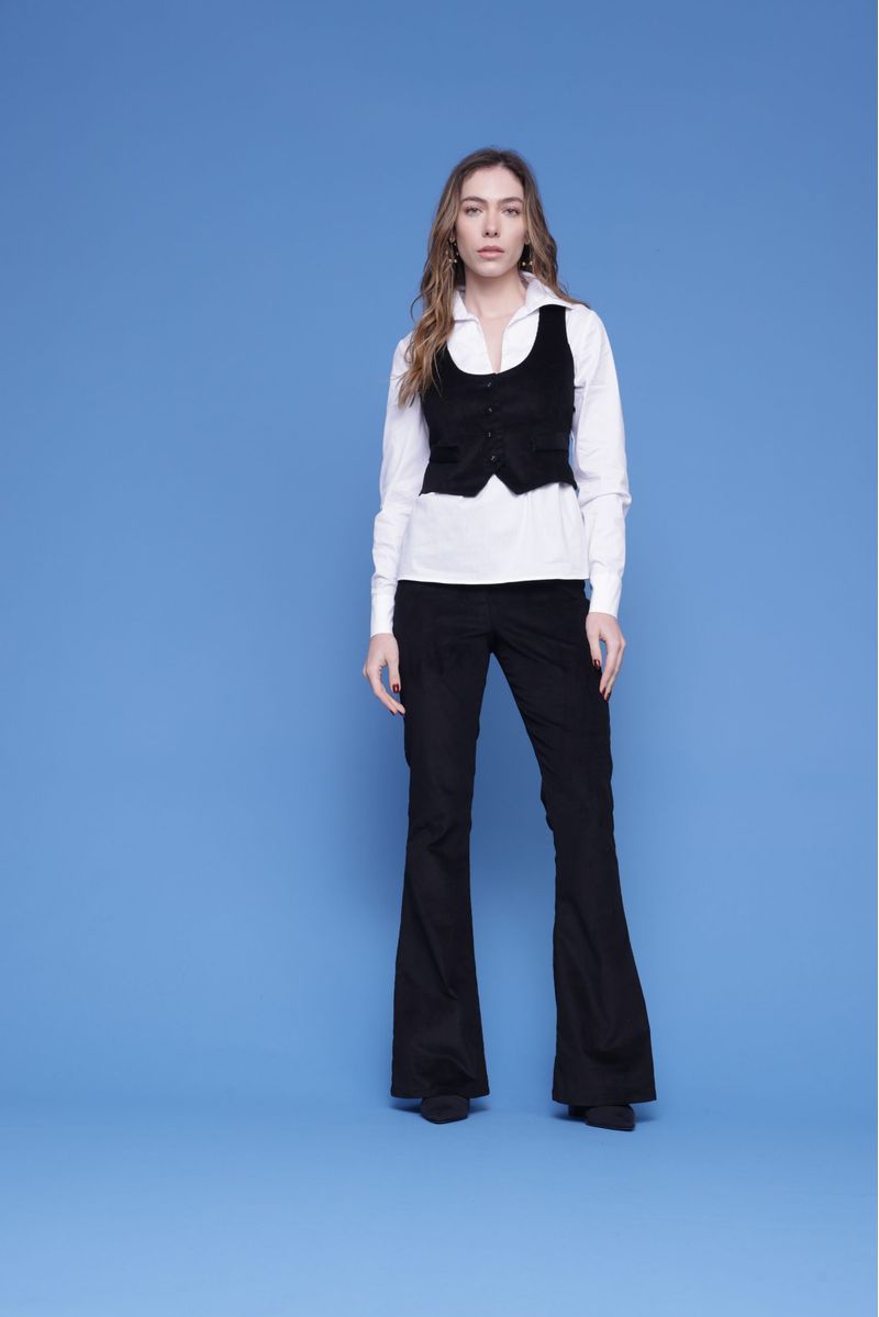 O Colete de Veludo Cotelê Cropped é perfeito para quem quer esbanjar estilo e personalidade. Acinturado e com ajuste nas costas, fechamento frontal com botão forrado em veludo e decote U. Pode ser usado como sobreposição ou somente ele com o blazer do mesmo veludo que fica show! E o look fica completo com a calça coordenada, em duas opções de modelo: flare ou skinny.