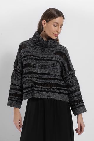 BLUSA TEXTURIZADA OMBRO SÓ - CINZA