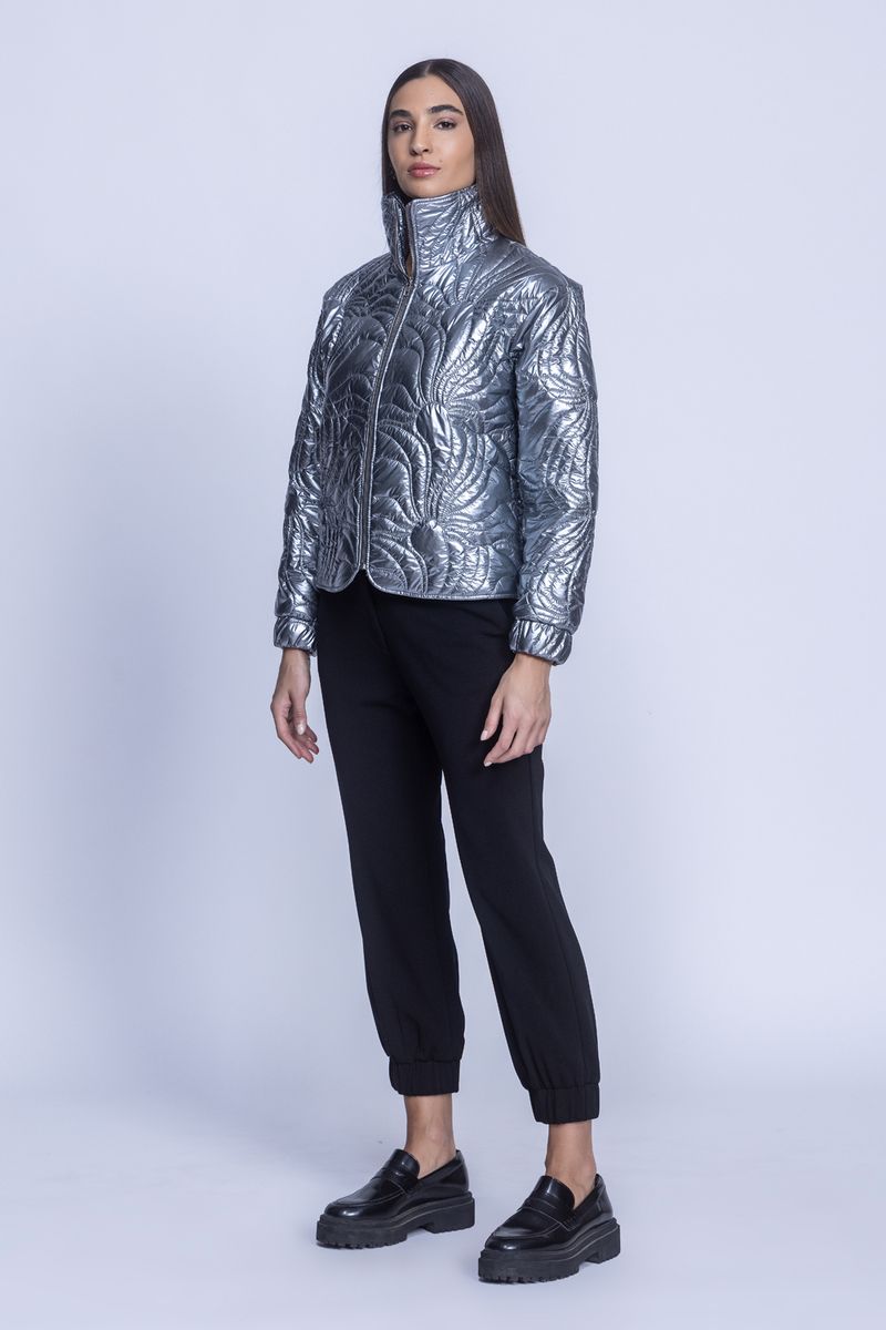JAQUETA MATELASSE METALIZADA é moderna, deixando o seu look super fashion. Ótimo para combinar com sobreposições de peças mais básicas como blusas de malha e tricot. A peça com um tecido de matelassê formando um desenho orgânico com detalhes pespontados é uma execelente escolha para os dias mais frios.