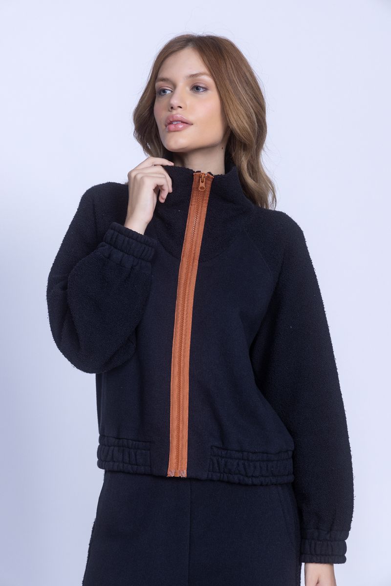 JAQUETA MOLETOM DESAGULHADO COM ZÍPER CONTRASTANTE é ideal para os dias mais frios, super confortável e versátil pode ser usada com bottons variados em jeans, malha, alfaiataria e couro, tudo vai depender da produção. Combine com a BLUSA MOLETOM DESAGULHADA SEM MANGA E GOLA ALTA e a CALÇA MOLETOM DESAGULHADA DETALHE ZÍPER COSTAS CONTRASTANTE da mesma família para looks incríveis. A Peça de moletom com fio desfibrado reciclado faz parte da nossa LINHA PUSCO SER, onde todas os tecidos possuem certificação de sustentabilidade. O chame do casaco está o zíper contrastante deixando tudo ainda mais estiloso.