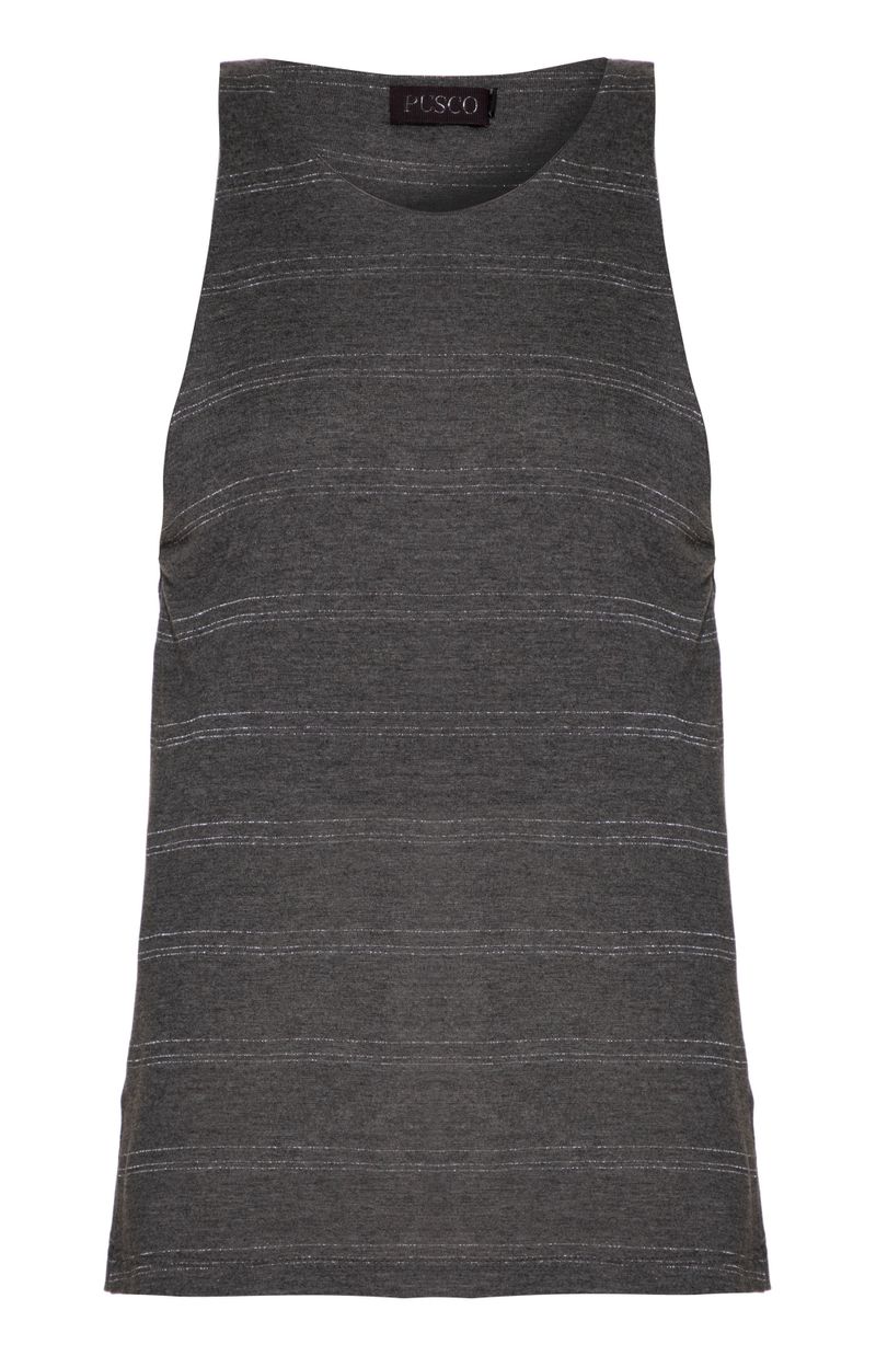 Regata nadador de malha com fio lurex. A básica nada básica, para looks descolados. - Estrutura levemente acinturada - Decote nadador - Composição 96% Viscose, 2,5% Poliéster e 1,5% Poliamida