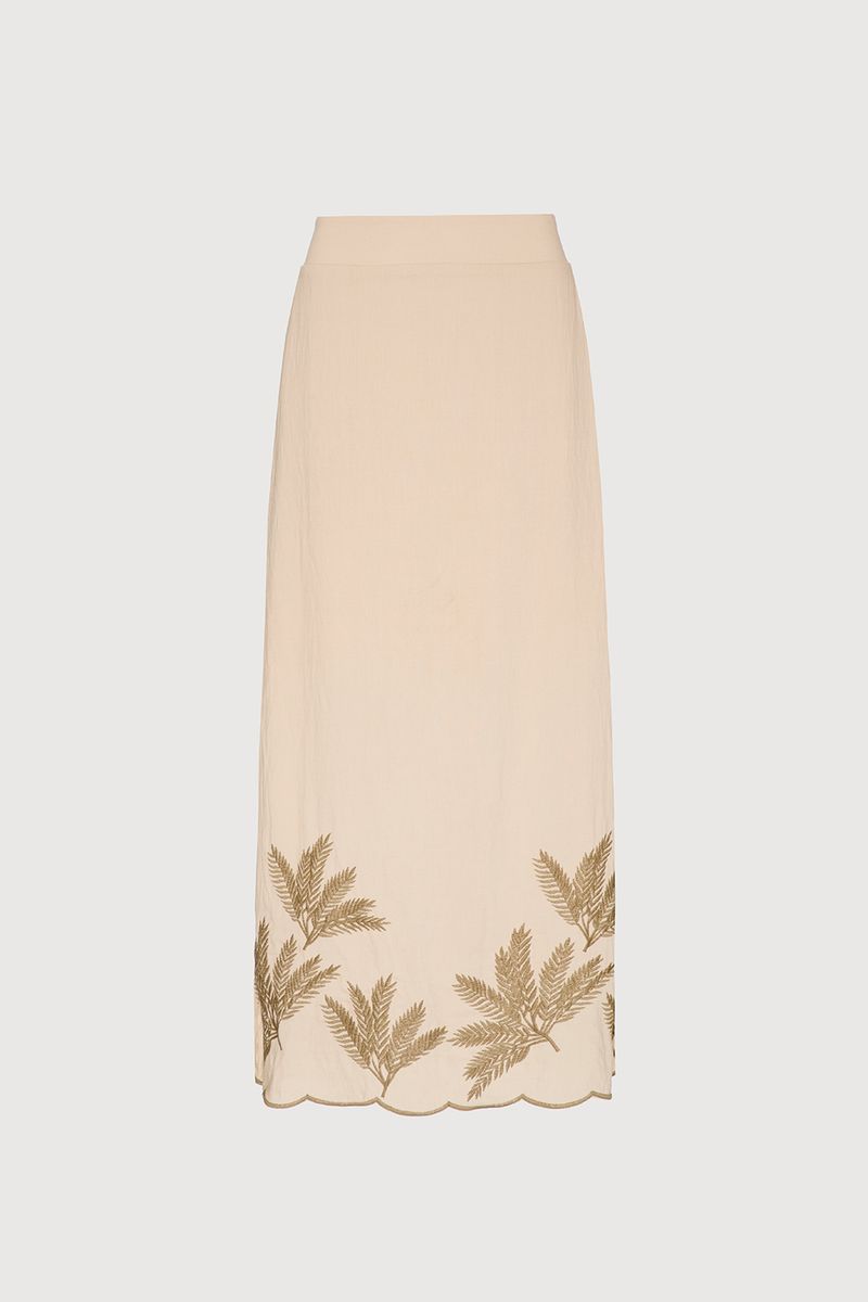 Saia Midi com Bordado no Barrado Com design leve e detalhes marcantes, esta saia midi é confeccionada em tecido com bordado no barrado, conferindo um acabamento delicado e cheio de personalidade. Possui bolsos laterais funcionais, fendas que proporcionam movimento e elástico nas costas para um ajuste confortável. Destaques Tecido com bordado no barrado: Valoriza a peça com acabamento artesanal e visual sofisticado. Modelagem midi com fendas laterais: Oferece leveza, fluidez e liberdade ao caminhar. Elástico no cós traseiro: Garante ajuste flexível e conforto ao vestir. Bolsos laterais: Práticos e discretos, trazem funcionalidade ao look. Como Usar Visual leve e contemporâneo: Combine com blusa de alças e rasteiras para um look casual e elegante. Proposta sofisticada: Use com camisa fluida e salto baixo para um estilo alinhado e feminino.